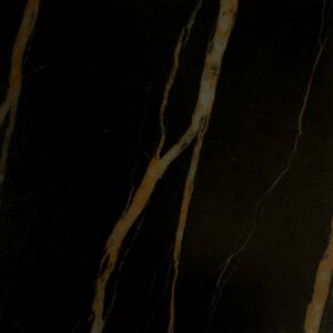Het tafelblad bestaat uit glas met een keramische toplaag, wat zorgt voor een sterke, krasbestendige en onderhoudsvriendelijke afwerking. Het zwarte metalen onderstel met kruispoot geeft de tafel een stabiele basis en een moderne uitstraling.