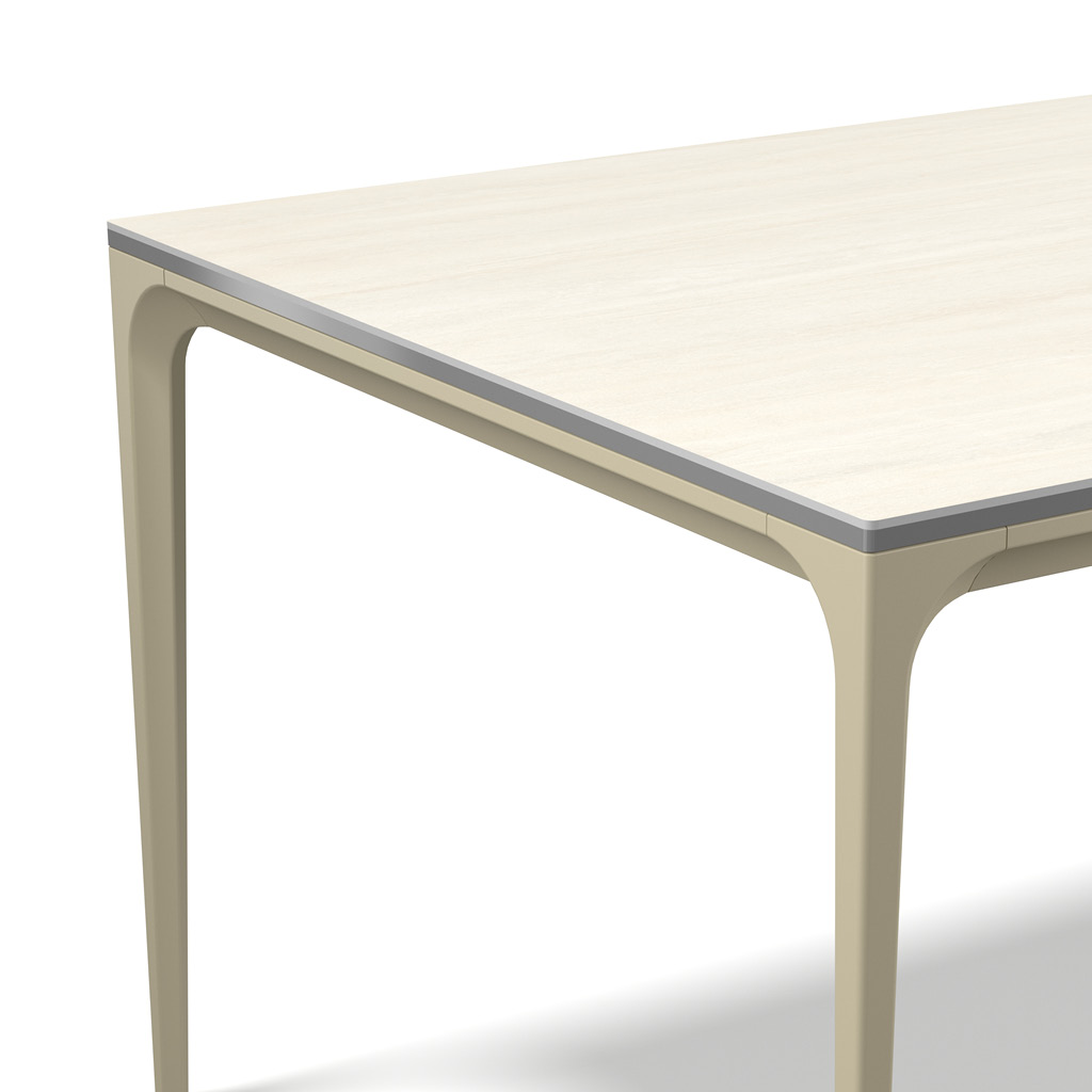 Stel je tafel volledig naar wens samen: kies uit vier keramische tafelbladen en combineer met het onderstel in de kleur die het beste past bij jouw interieur. Verkrijgbaar in drie formaten: 200, 220 of 240 cm lang, telkens 100 cm breed.